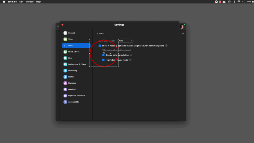 Tick the boxes below to disable echo cancellation and enable High Fidelity Audio Mode.