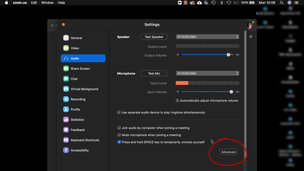 Even if you are using your computer’s internal mic and speakers, you should adjust the default settings in Zoom to optimize your audio stream. You can now adjust the settings on mobile devices as well as the desktop version. PLUS Zoom recently introduced a High Fidelity Music Mode option too.