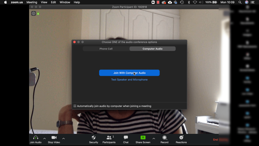When you begin a new meeting choose ‘Join with Computer Audio’