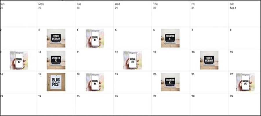 This way, you can spread out how often you are posting content related to this 1 topic. Here’s what your calendar might look like: